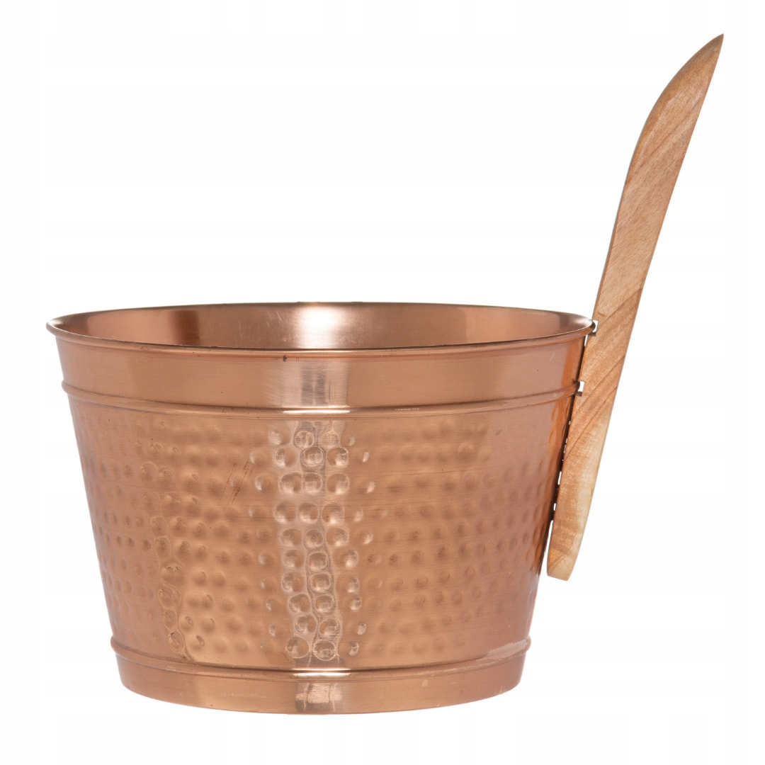 Ceber do sauny 4Living – miedziany, 4 L z drewnianą rączką