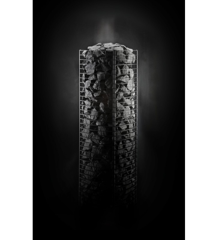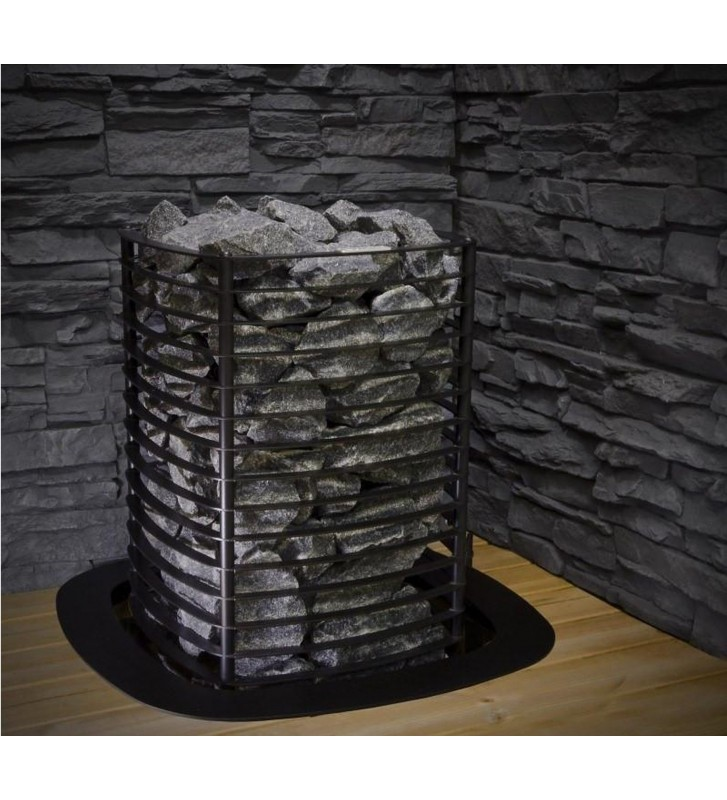 Duża pojemność kamieni – umożliwia intensywne polewanie wodą, obfitą parę oraz długotrwałe utrzymanie wysokiej temperatury