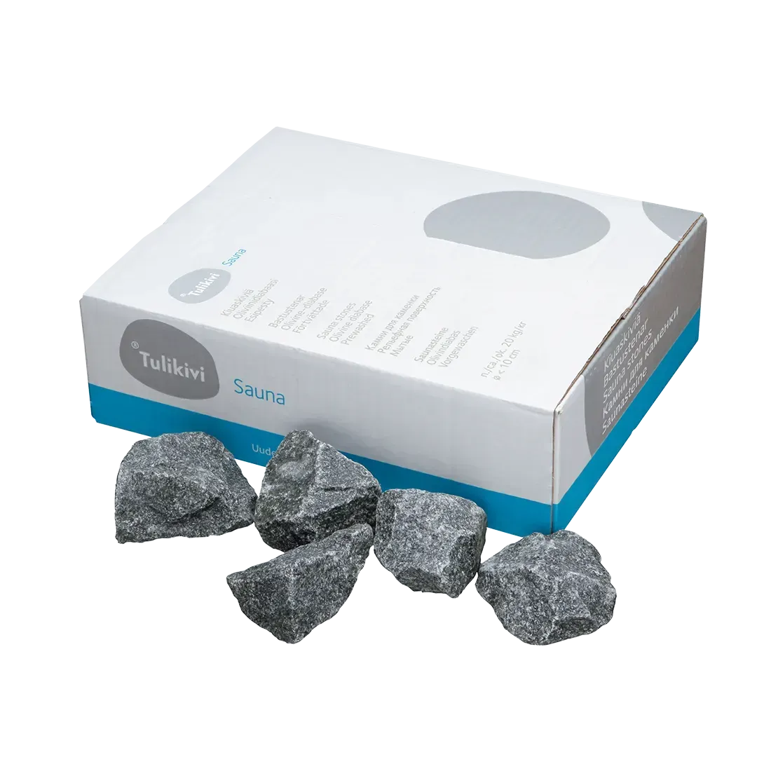 Naturalne kamienie oliviin‑diabaasowe (średnica < 10 cm) przeznaczone do elektrycznych pieców saunowych Tulikivi. Pakowane po 20 kg, idealne do wymiany lub uzupełnienia zestawu kamieni w piecu.