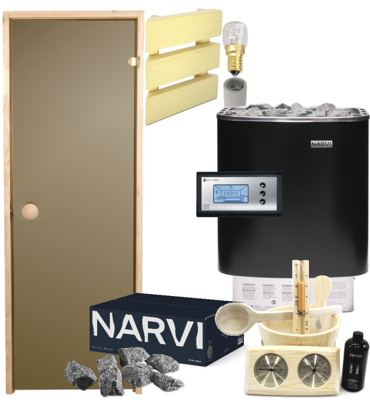 Zestaw piec NARVI NS, drzwi, akcesoria, lampa saunowa